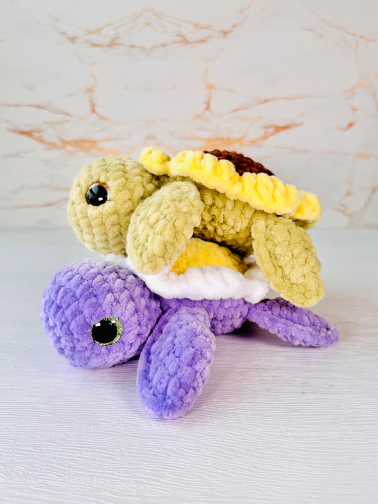 Handmade crocheted flower turtles that are just so sweet with a rattle inside to bring smiles! With two standard options to choose from, there's also customization available too! Just please be sure to include your choices in your order notes or direct message me on Instagram!