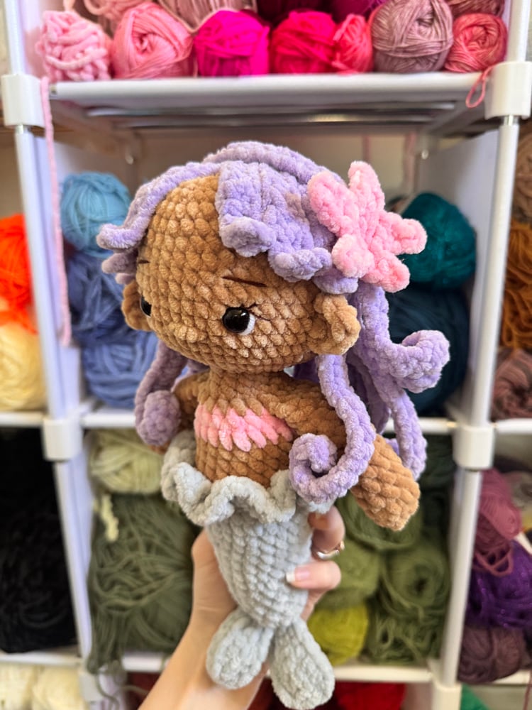 With over 2000 stitches and 8 hours to complete I bring you an absolute PRECIOUS mermaid! all colors are customizable just gotta tell me! please keep in mind these are made to order so there might be a wait!